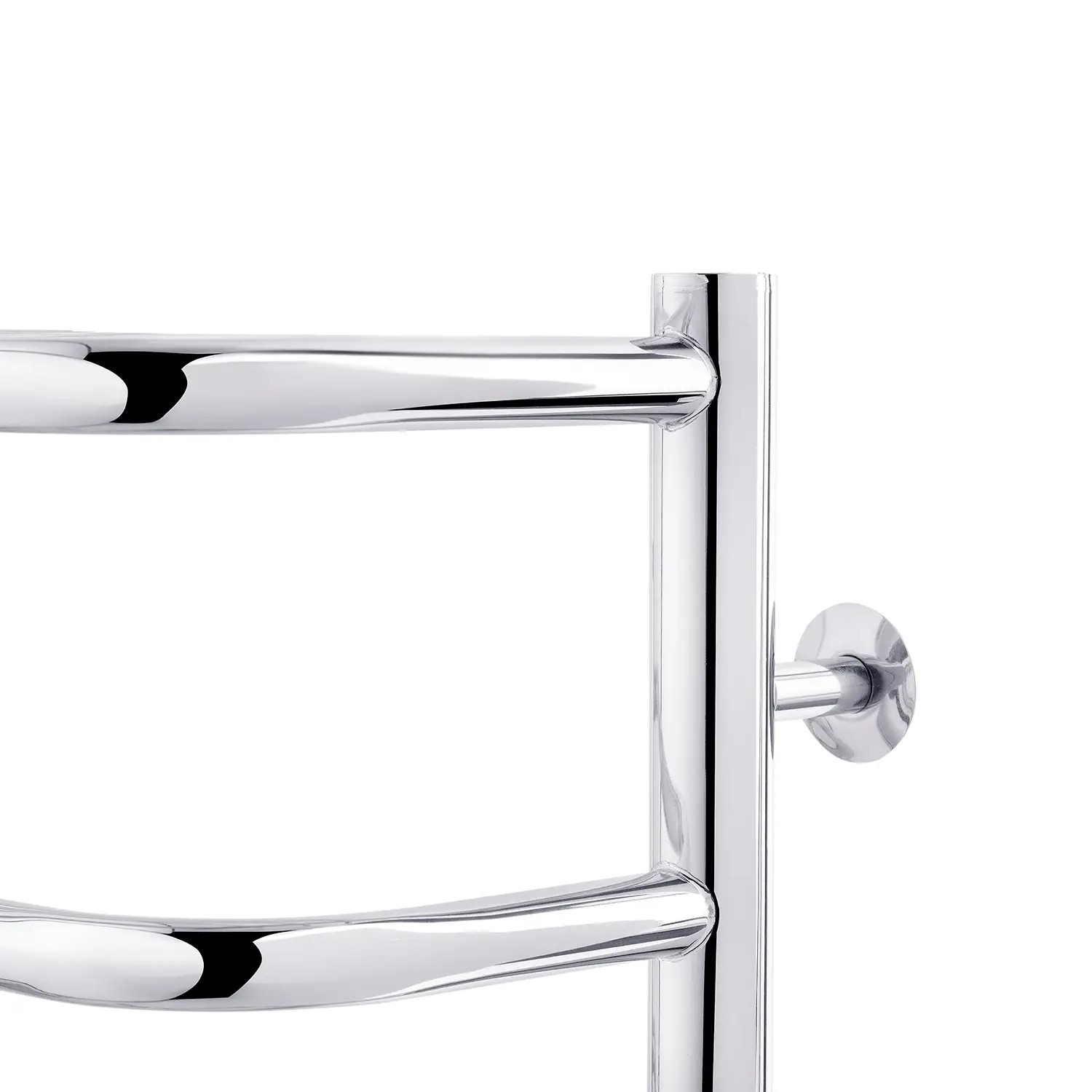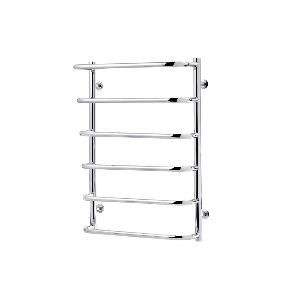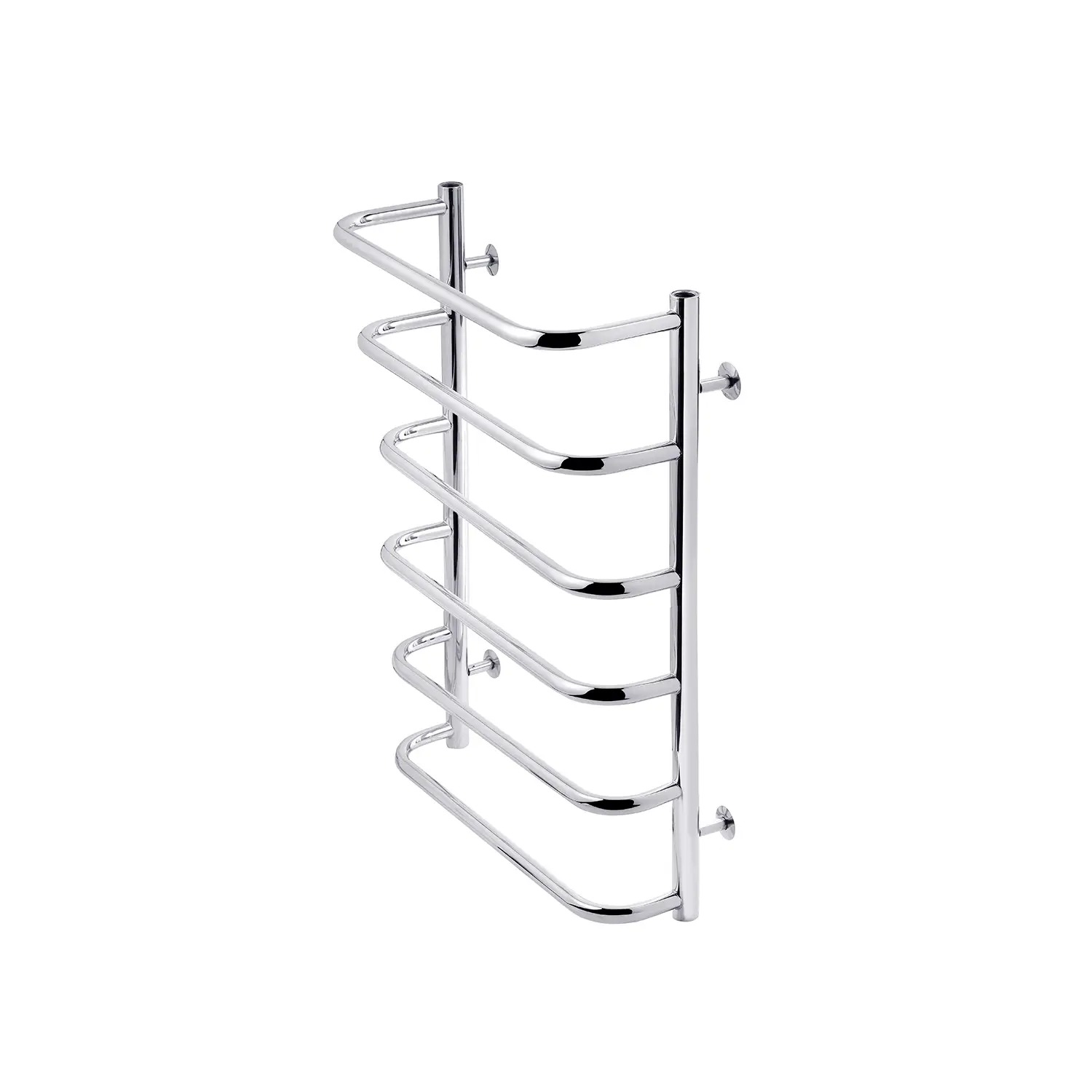 Водяний сушка для рушників Kroner виготовлена з харчової нержавіючої сталі SUS301 і має хромоване покриття. Сушка для рушників виконана у формі драбинки з перемичками різного розміру. Така конструкція зручна для багаторівневого розміщення рушників. У комплект поставки входить сам сушарка для рушників, набір кріплень до стіни, кран Маєвського і заглушки. Таким чином ви можете підключити сушарку для рушників в будь-якій комбінації (бічної, нижньої або діагональної) до системи гарячого водопостачання для роботи цілий рік з гарантією 10 років або до системи опалення – для роботи в опалювальний період, з гарантією 3 роки.