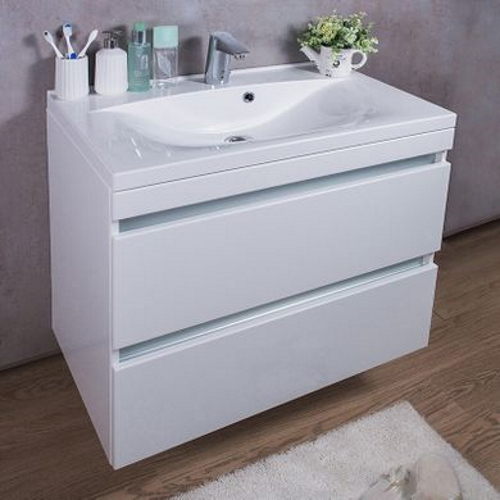 Всі меблі для ванної кімнати поставляються у зібраному вигляді. Її можна повісити на стіну або встановити на підлогу, використовуючи ніжки.