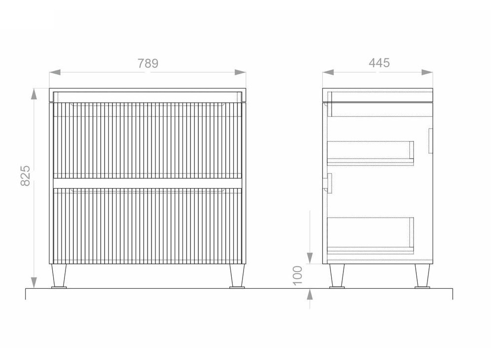 Підлогова, пристінна тумба APOLLO від Aquarius має габаритні розміри 78,7 х 81 х 44,5 см (Ш х В х Г), і оснащується двома висувними ящиками з внутрішнім простором для зберігання різноманітної побутової хімії та дрібних дрібниць. Модель поставляється разом із раковиною зі штучного каменю Lux 80 шириною 80 см. Раковина має отвір для монтажу змішувача та переливний отвір. Модель поставляється без змішувача з ніжками.