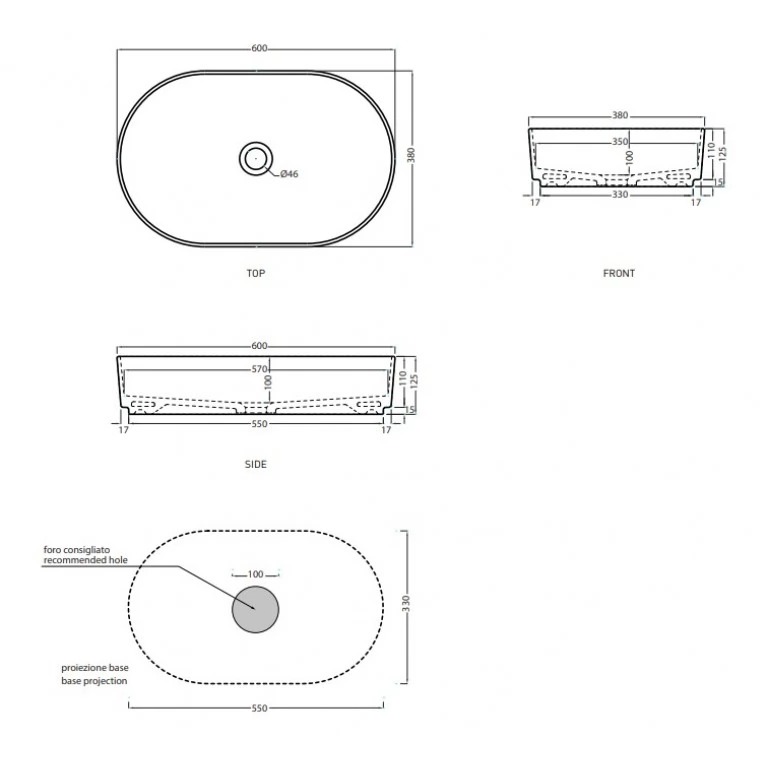 - без отвору під змішувач