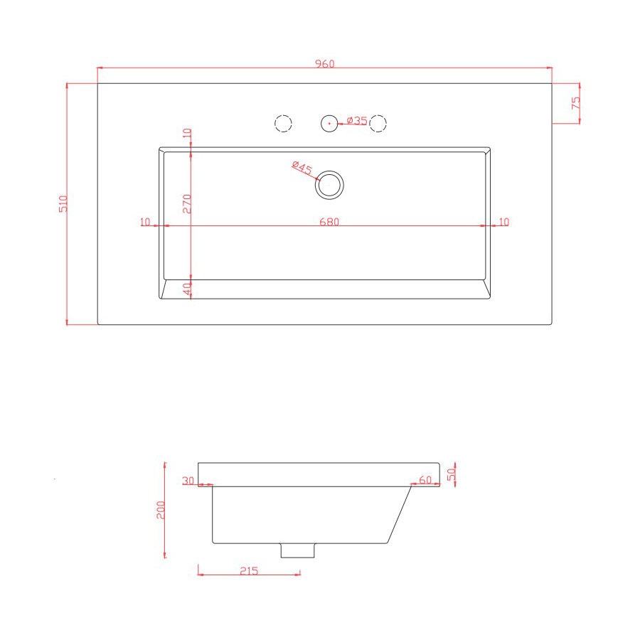 - з площиною та отвором під змішувач