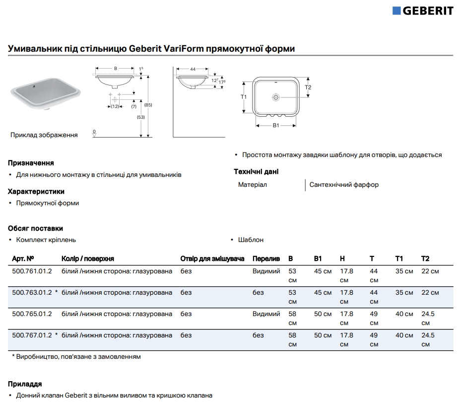 Умивальники Geberit VariForm із округлими краями ідеально вписуються в ультрасучасний дизайн ванних кімнат. Вмивальники, що вбудовуються, а також накладні з отвором для переливу і без отвору. Змішувач може бути встановлений на керамічну частину умивальника, стільницю або, як варіант – у стіні. Всі моделі Geberit VariForm мають глибоку чашу, що забезпечує свободу руху та ергономічний дизайн. Високоякісна сантехнічна кераміка умивальників стійка до подряпин та тріщин, до того ж вона легка у догляді.
