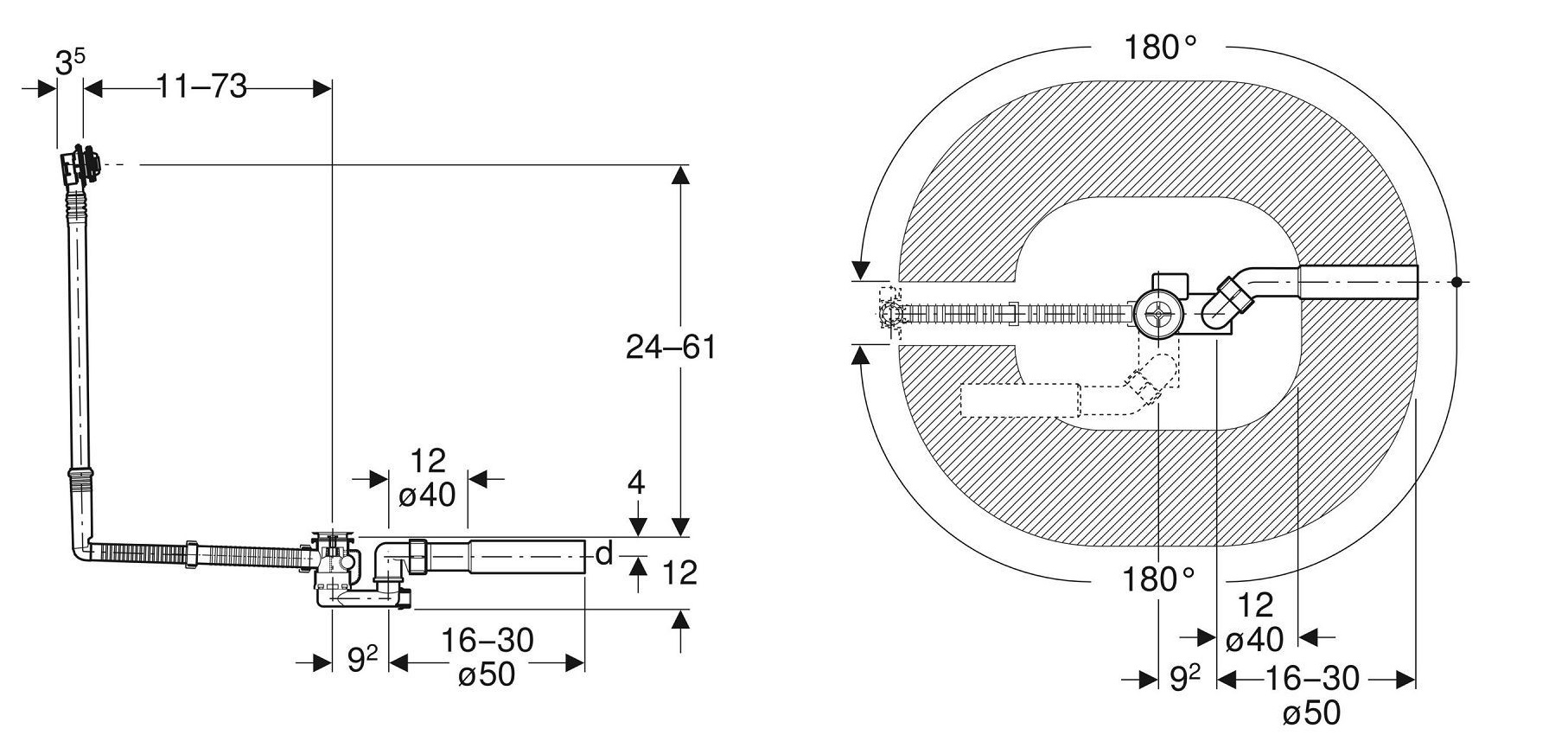 Злив-перелив для ванни Geberit з поворотним механізмом d52, довжина 73 см, глянсовий хром, d=40/50 мм (150.525.21.6)
