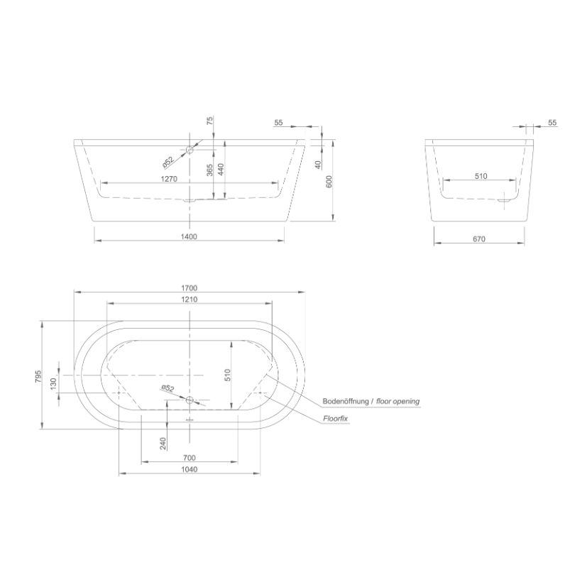 - довжина: 1700 мм