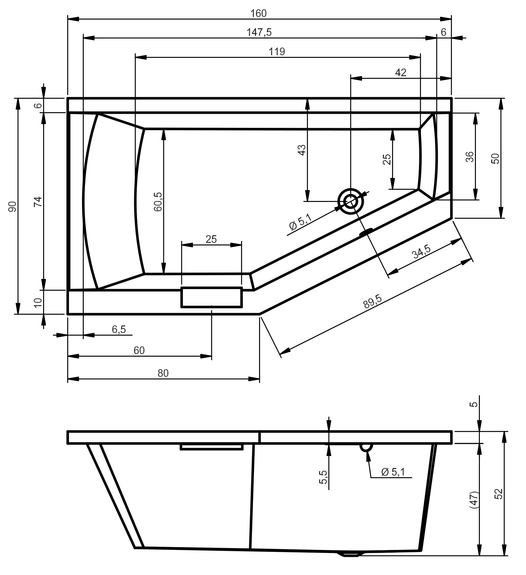 Ванна акрилова Riho Geta 160×90 Right (B029001005)