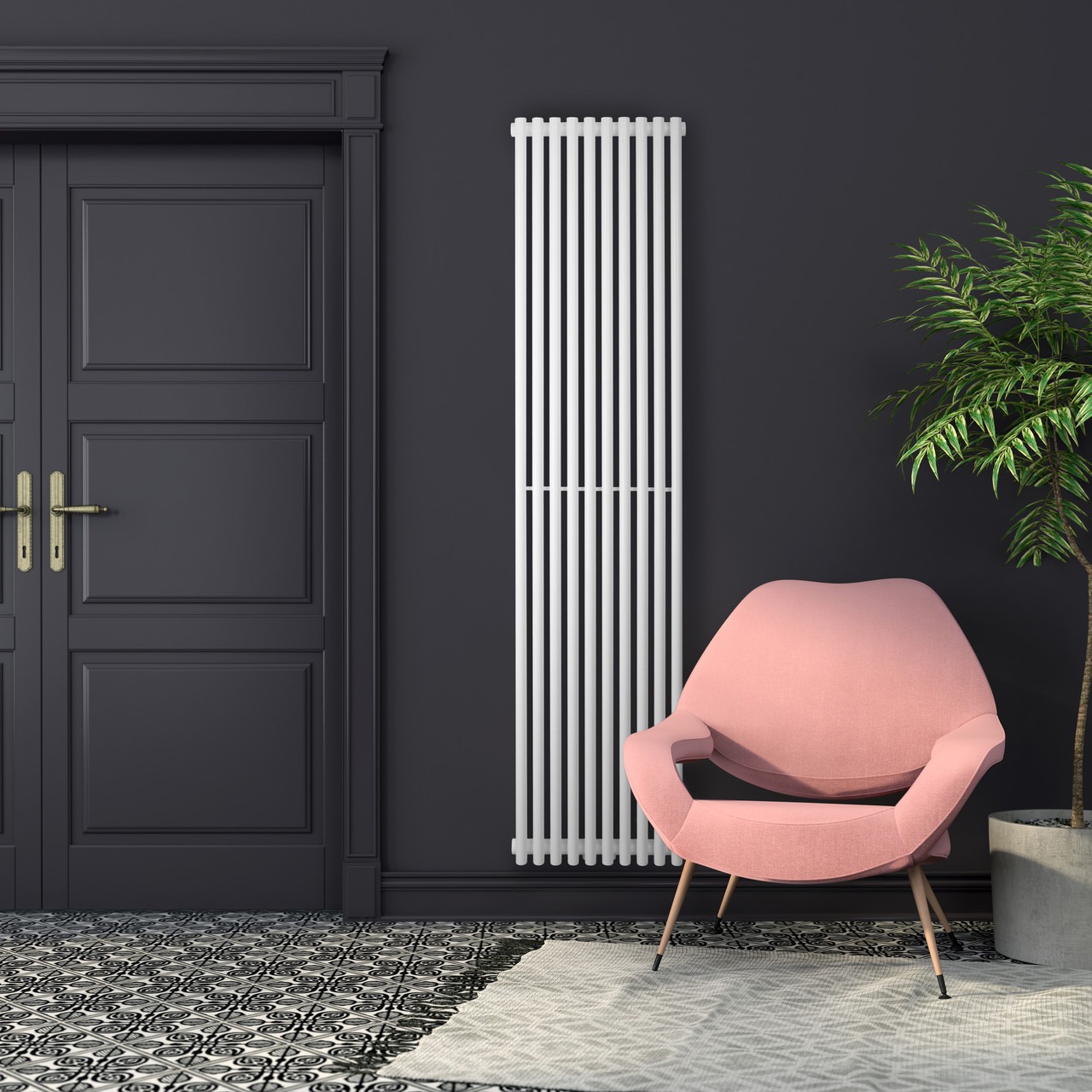Вертикальний дизайнерський радіатор BETATHERM Praktikum 1600і349 мм, 1250 Вт PV 2160/09 9016M 99