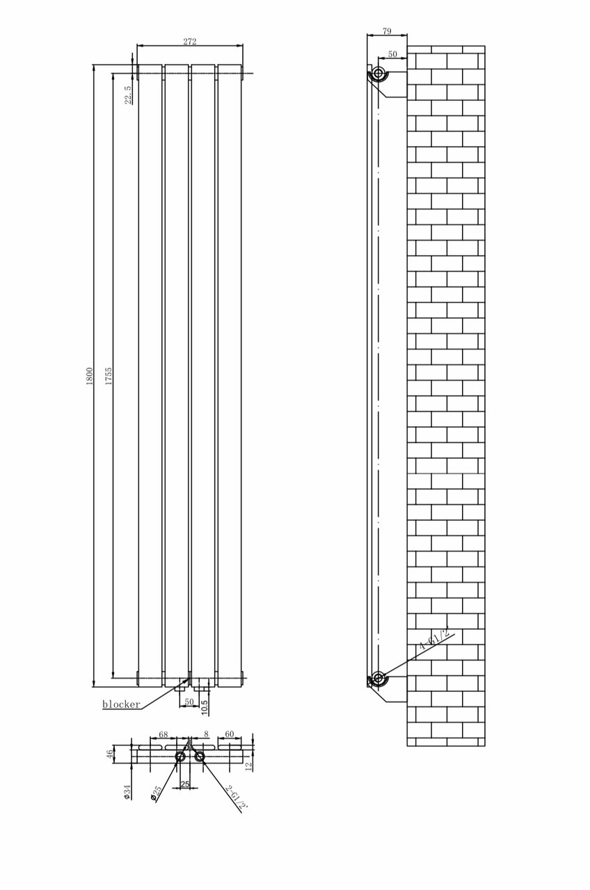 - Розмір: висота і 1800 мм, ширина і 272 мм