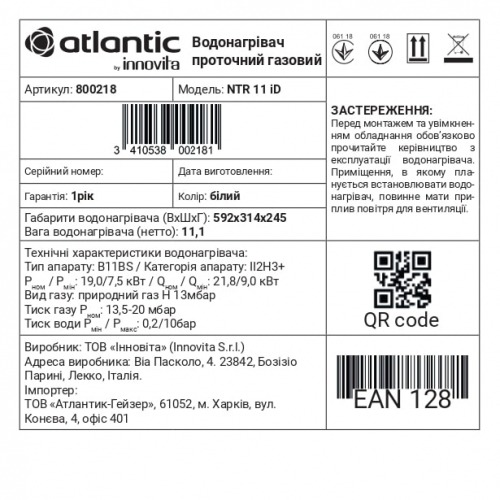 - Багаторівнева система безпеки і датчик протоки, датчик тяги, датчик перегріву, система контролю розпалювання та полум’я пальника.