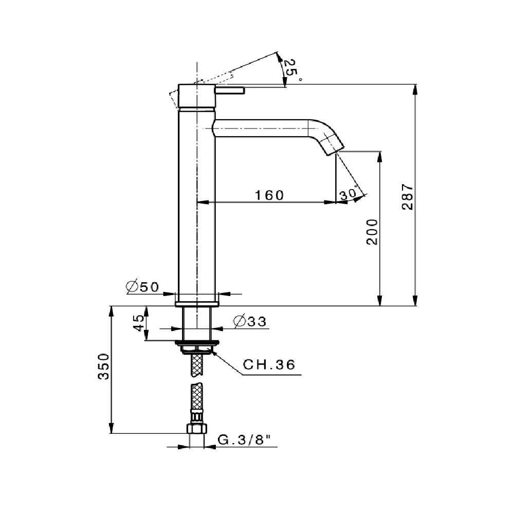 • Гнучка підводка довжиною 35 см і гайкою 3/8 дюйма