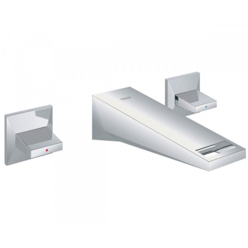 Змішувач для раковини, двовентильнийБез вбудовуваного механізму, керамічні вентилі для гарячої та холодної води 1/2″ – 90°;хром, вилив з вбудованим аератором, винос 161 мм, розмір по осях 200 мм, обмежувач витрати води 5 л/хв
