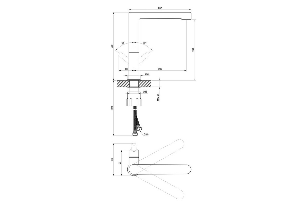 • з’єднувальні шланги: гнучкі 450 мм, діаметр G3/8