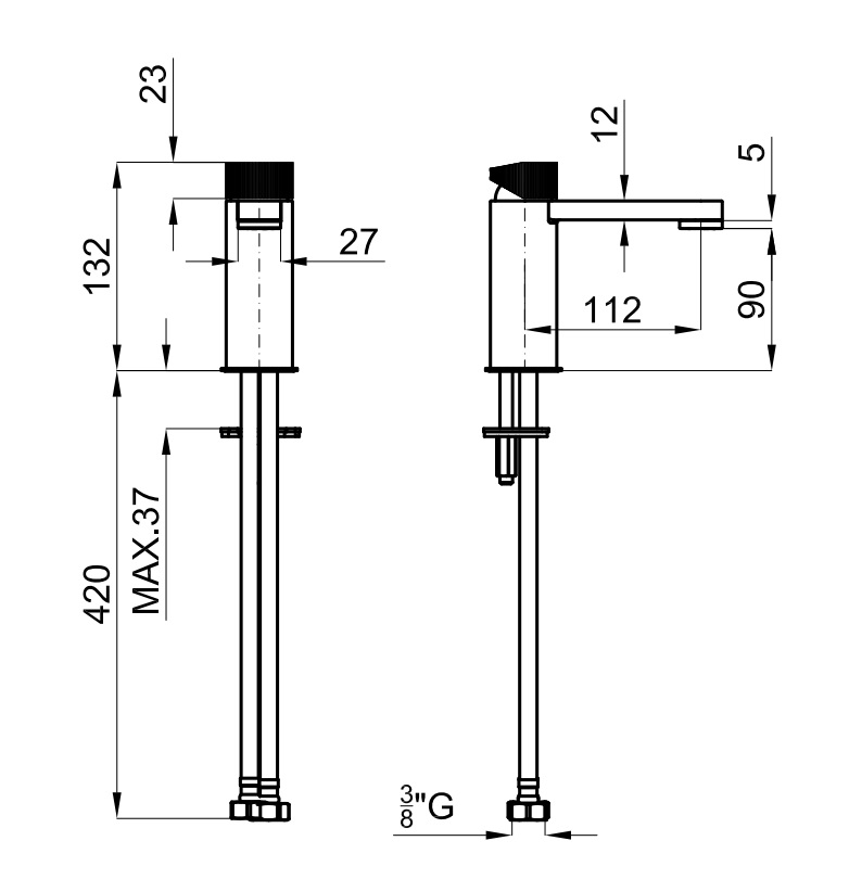 - шланги зі з’єднанням 3/8″ та довжиною 500 мм