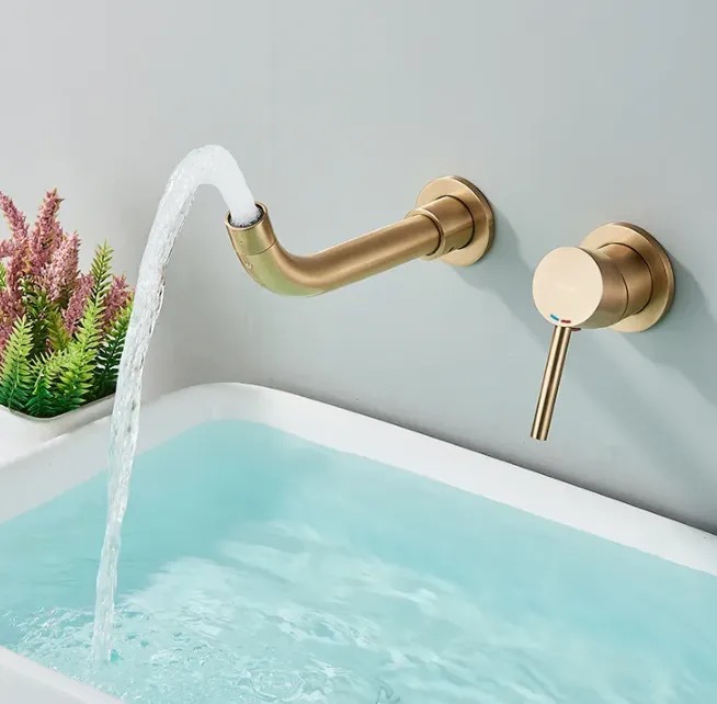 Змішувач і чудовий вибір для власників будь-якої ванної кімнати. Модна форма латунного корпусу покрита 4-кратним шаром високоякісного золотистого покриття. Завдяки цьому методу акумулятор захищений від корозії, потьмарення та знебарвлення. Ця модель призначена для кріплення на стіну. Діапазон поворотного виливу: 20 см – довга версія на 5 см довша за стандартну (15 см)! Система забезпечує легкий доступ до внутрішніх компонентів змішувача після встановлення для обслуговування.