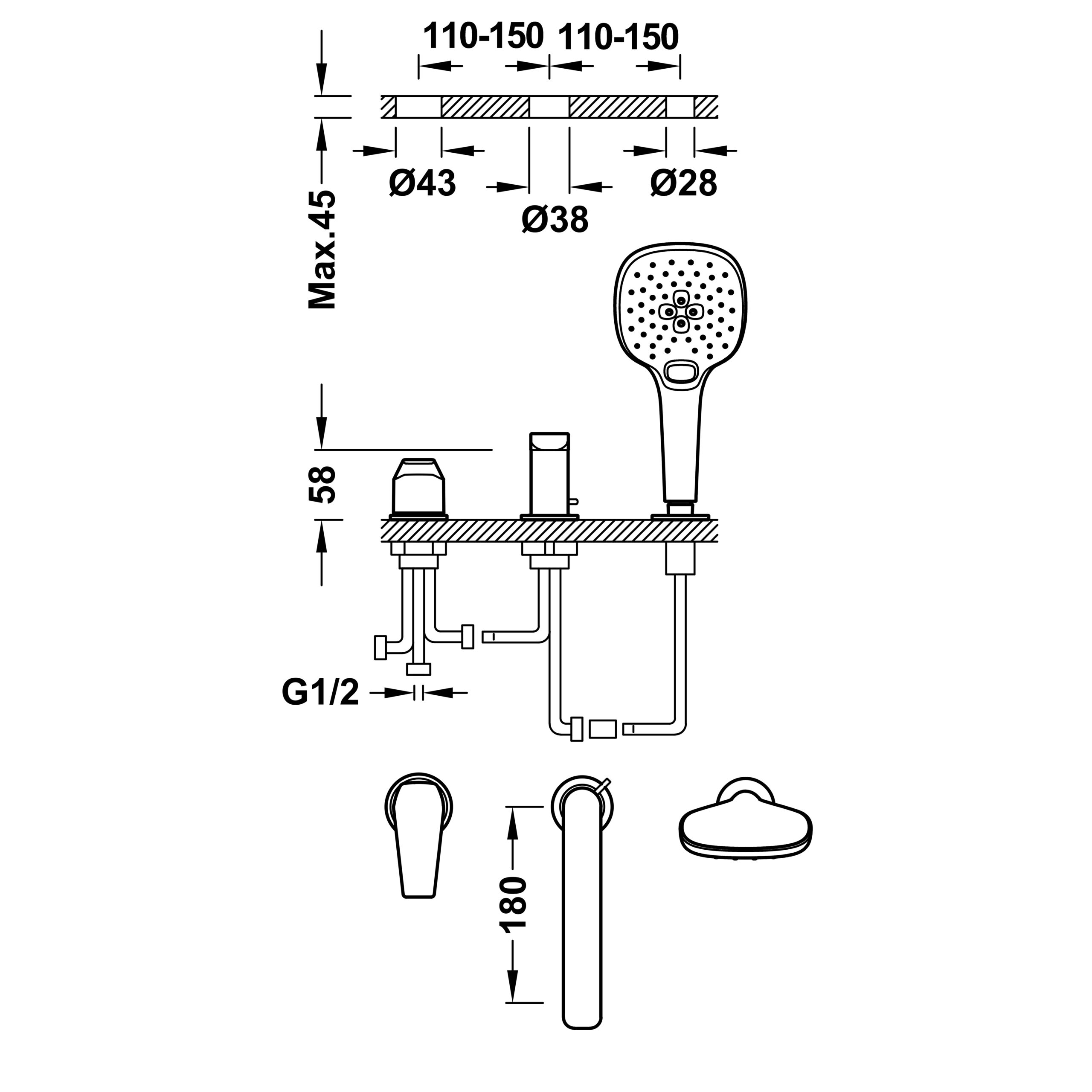 - Ручний душ 3 струмені