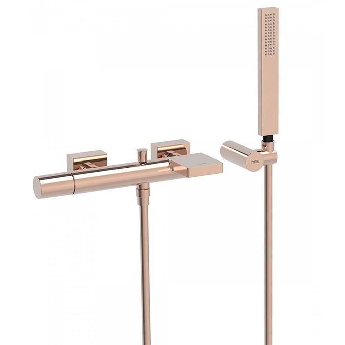 Змішувач для ванни Tres Project-Tres з ручним душем, тримачем та шлангом, матове рожеве золото (21117001OPM)