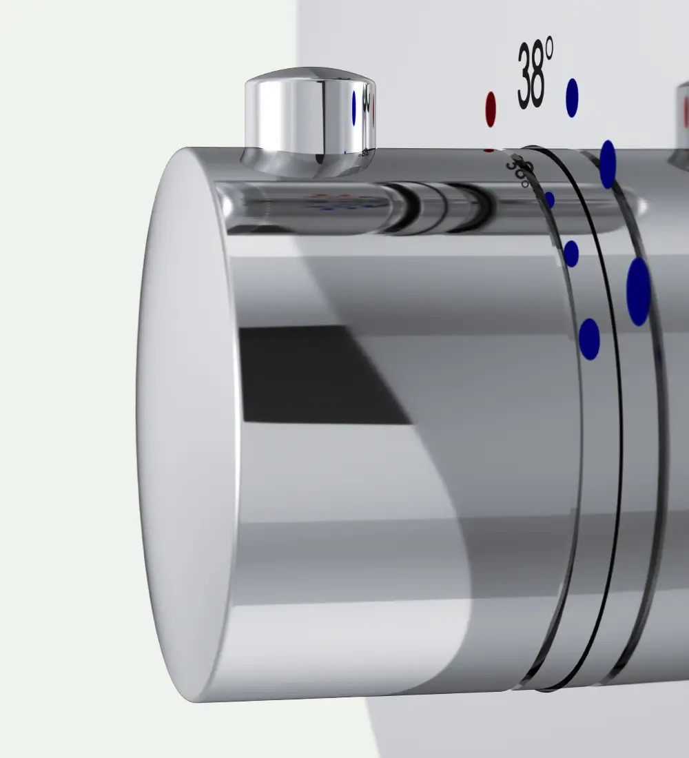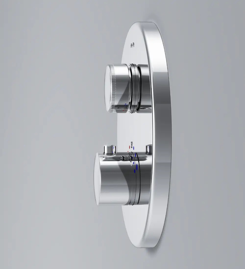 Продукт оснащений термостатичним змішувачем для підтримки незмінної температури води, стопор безпеки на 38° C, пару рукояток і декоративних частин максимально захищає внутрішні порожнини від попадання води та забруднень, а дренажні канали забезпечать виведення конденсату зі стіни назовні.