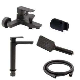 Набір змішувачів з душовим гарнітуром Qtap Lipno QTLIPNO1023H101CB + QTLIPNO4023101CB чорний (QTLIPNO1023H101CB45465)